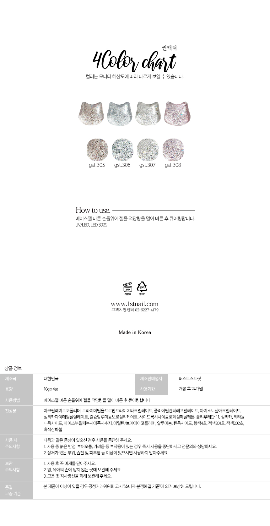 퍼스트스트릿 펄스젤 썬캐쳐 반사 글리터젤 4종 세트