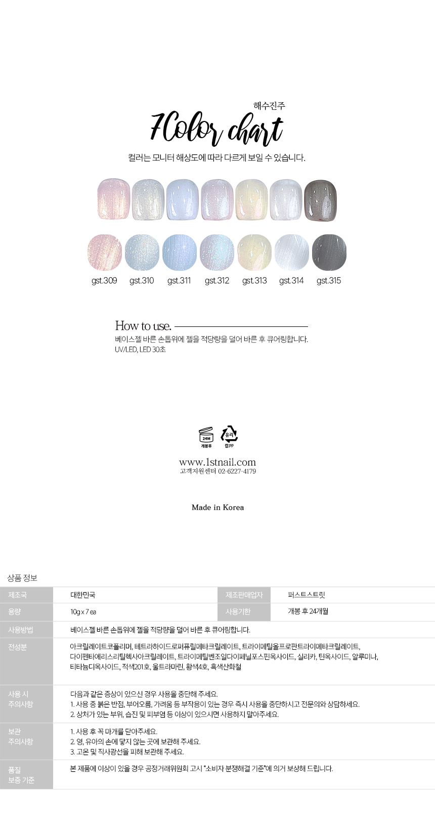 퍼스트스트릿 펄스젤 해수진주 글리터 진주젤 7종 단품