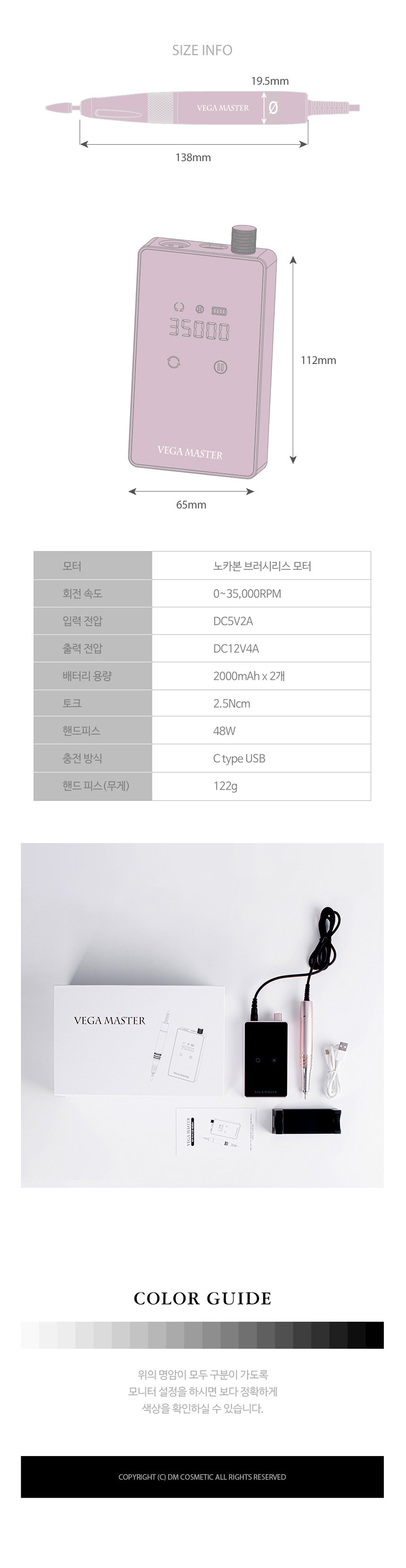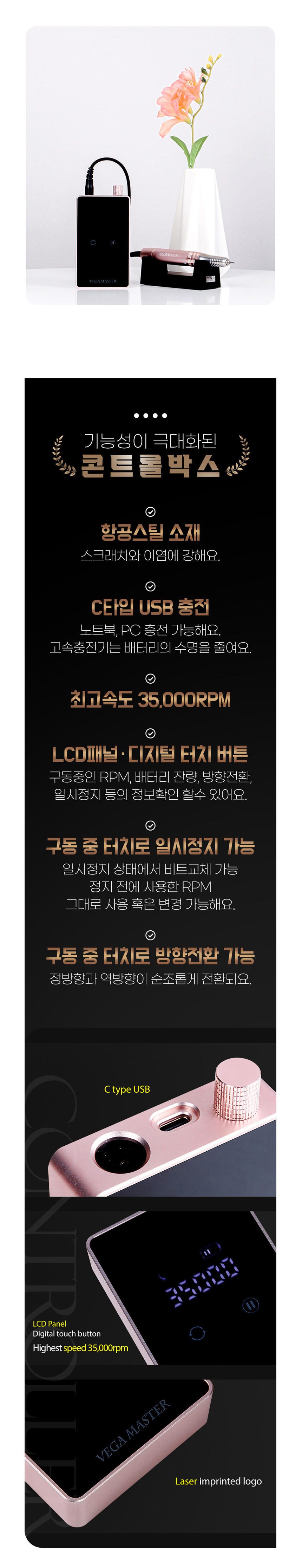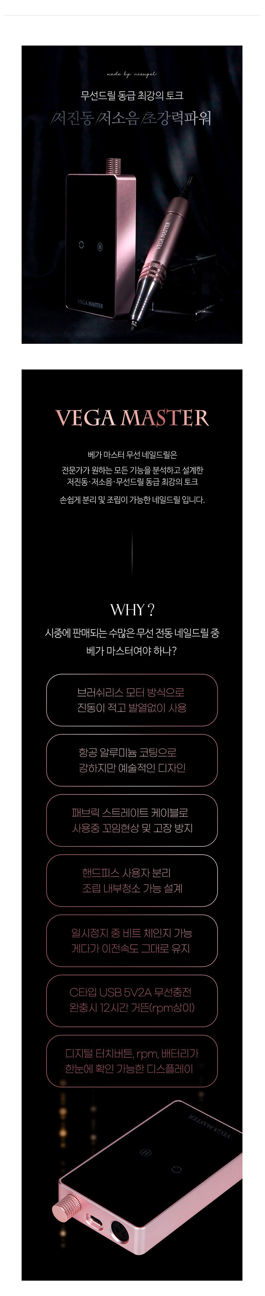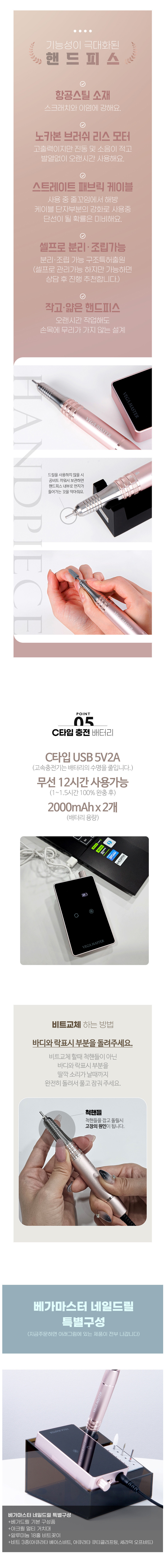 뷰젤 베가마스터 네일드릴 세트+핸드피스1개 추가 (본체1개+핸드피스2개)+비트3종