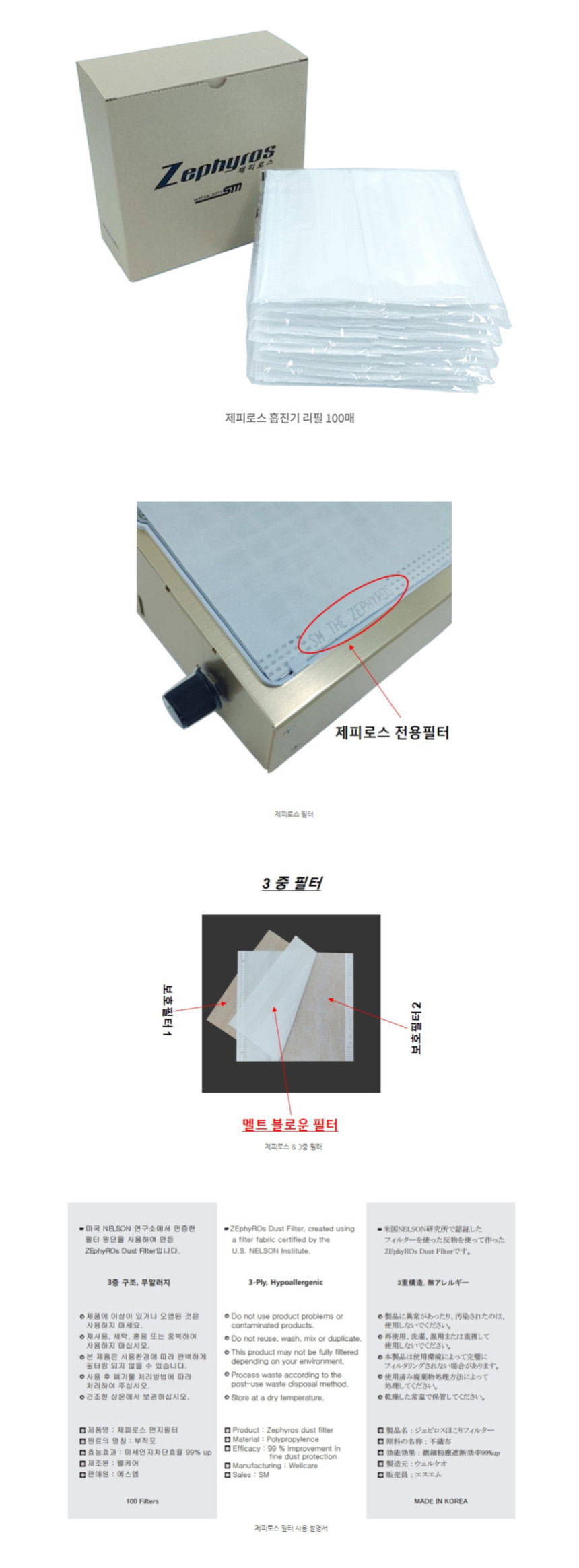 제피로스 네일 흡진기 필터 100매입
