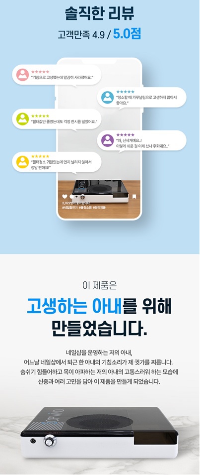 솝윈드 무필터 필터없는 네일 흡진기 먼지흡입 집진기