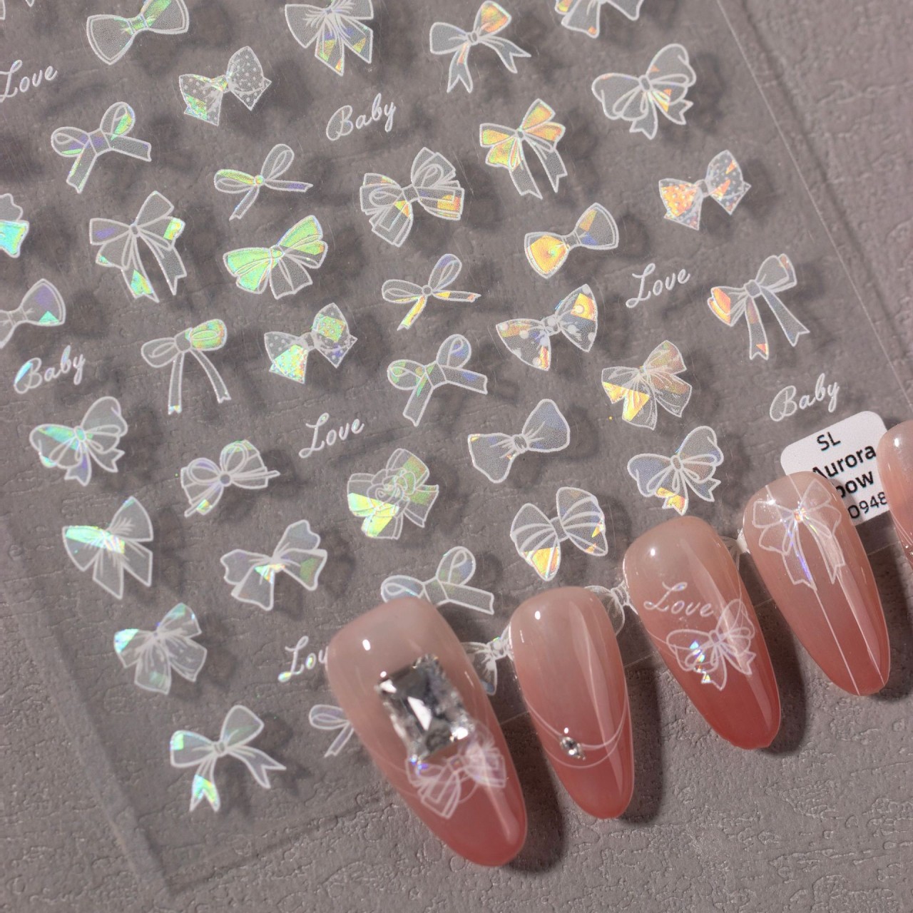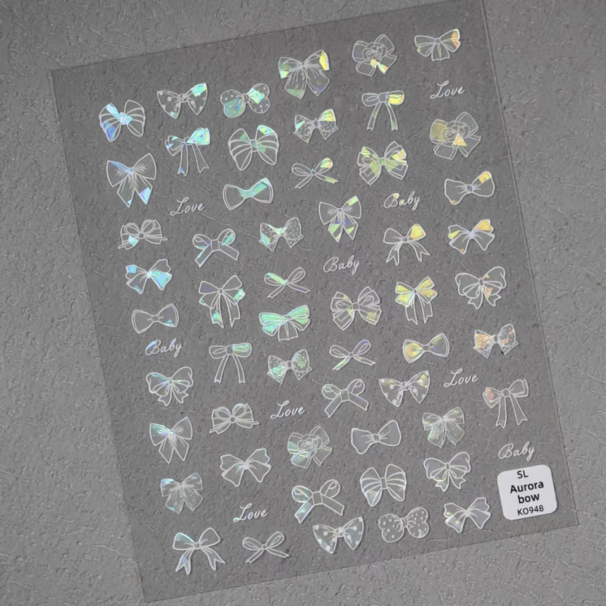 화이트 오로라 리본 믹스 네일 스티커 KO948
