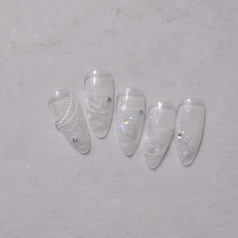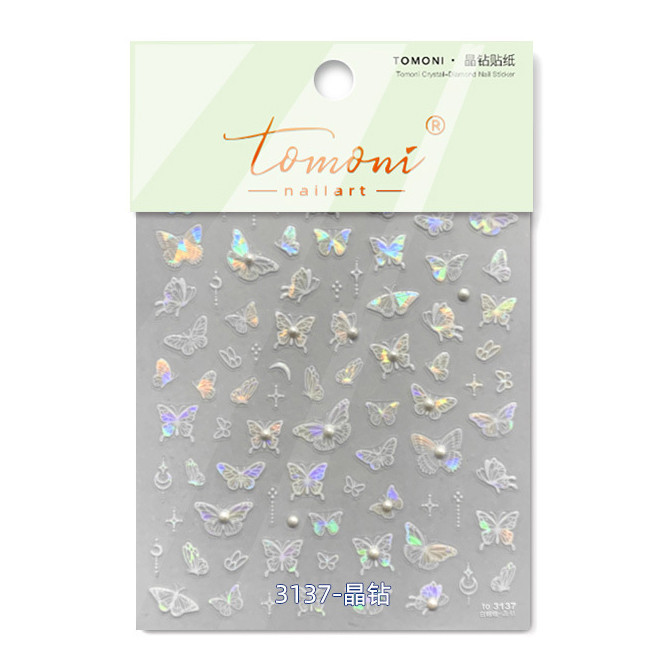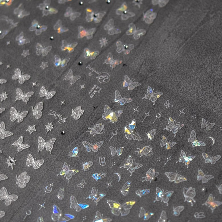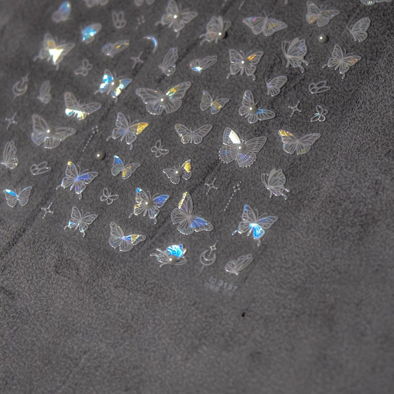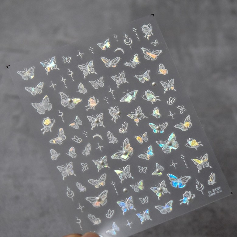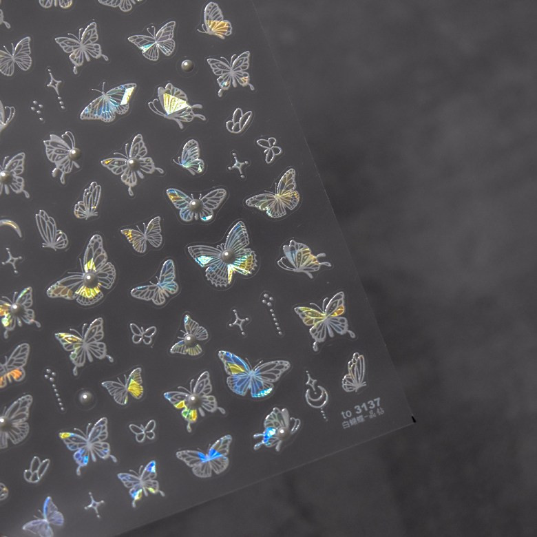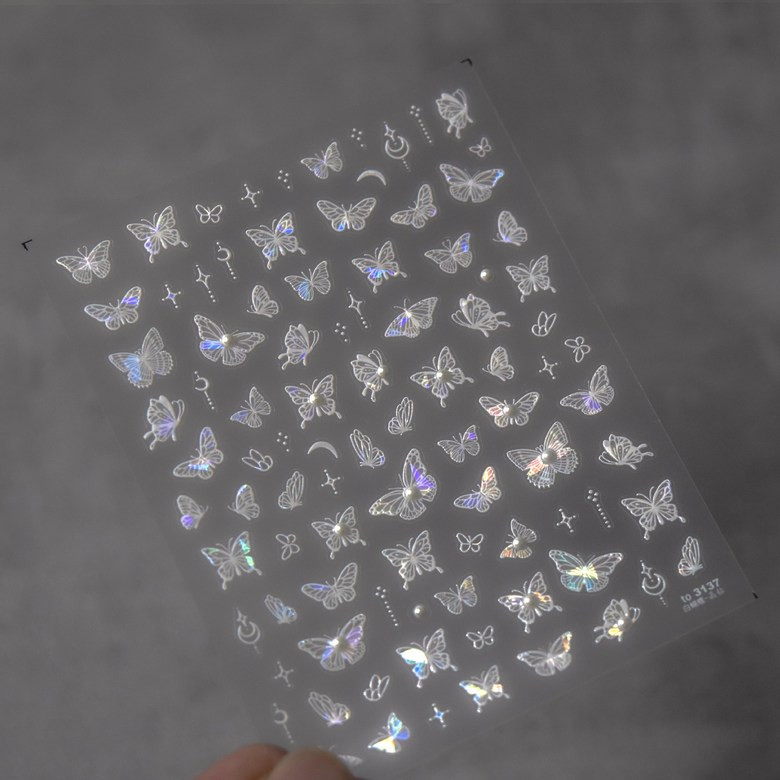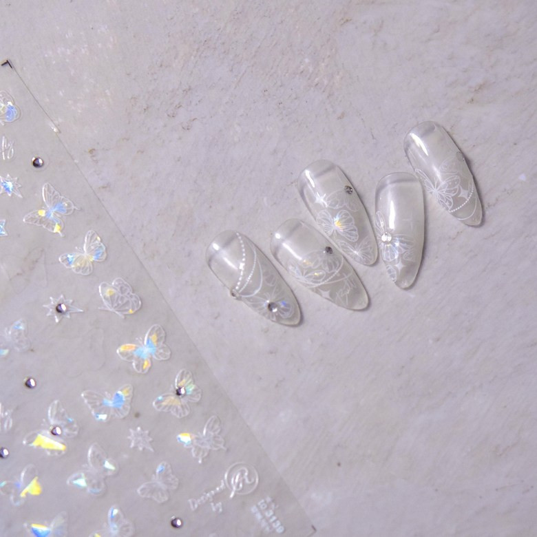 홀로그램 화이트 진주 나비 네일스티커 오로라 체인 엠보 to3137