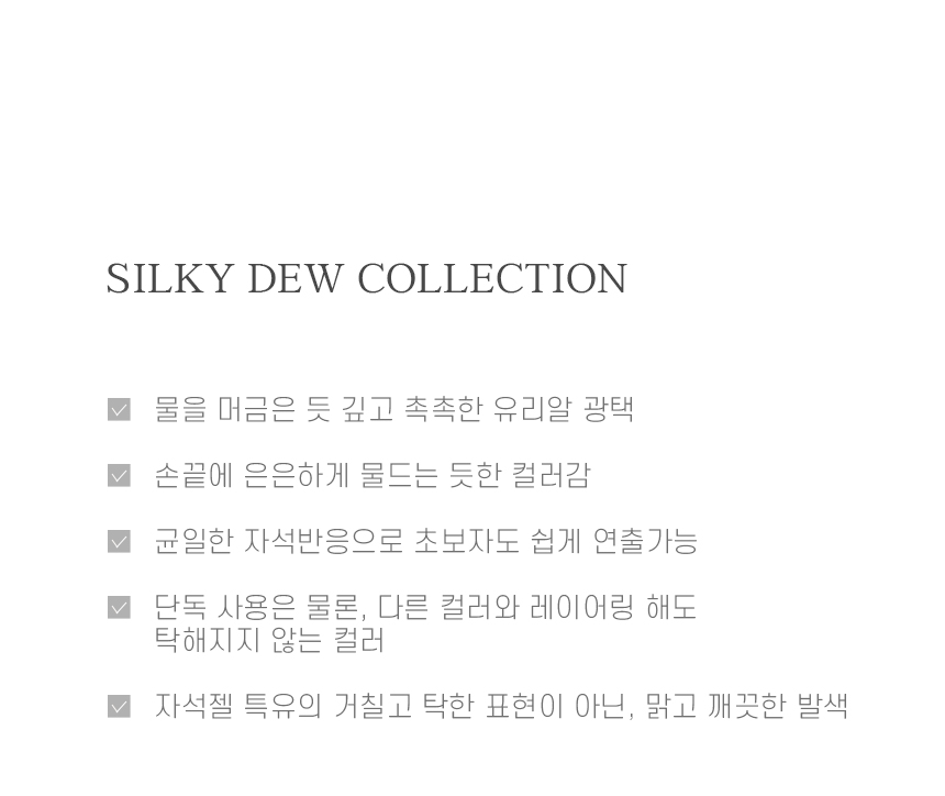• 다른 컬러와 레이어링 해도 탁해지지 않는 자석젤을 원했던 분
