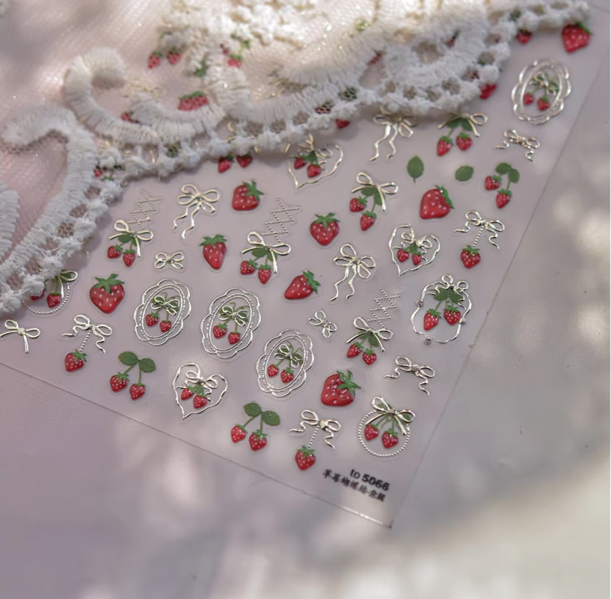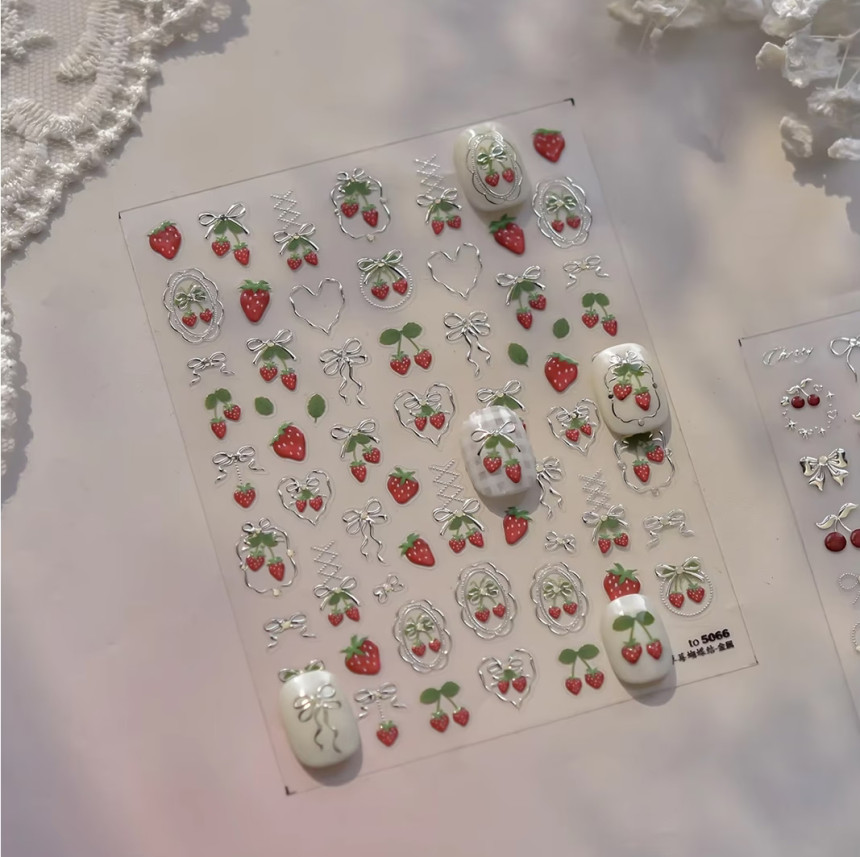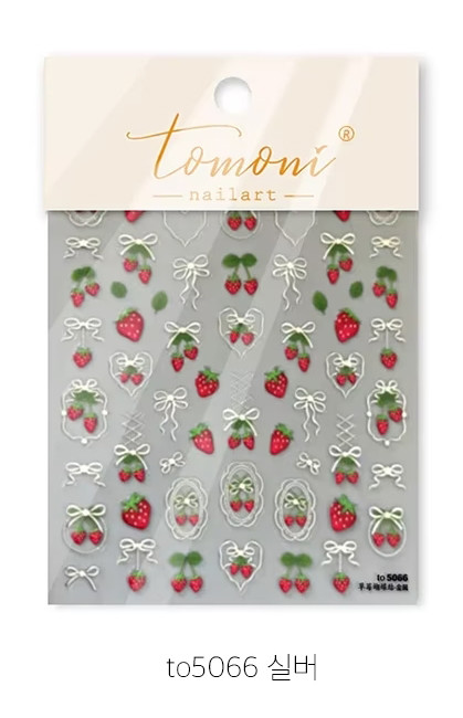 네일스티커 to5066 딸기 리본 레드 스트로베리 실버 메탈