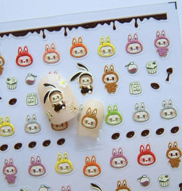 엠보 파스텔 토끼 라부부 캐릭터 네일스티커 HG-5D449
