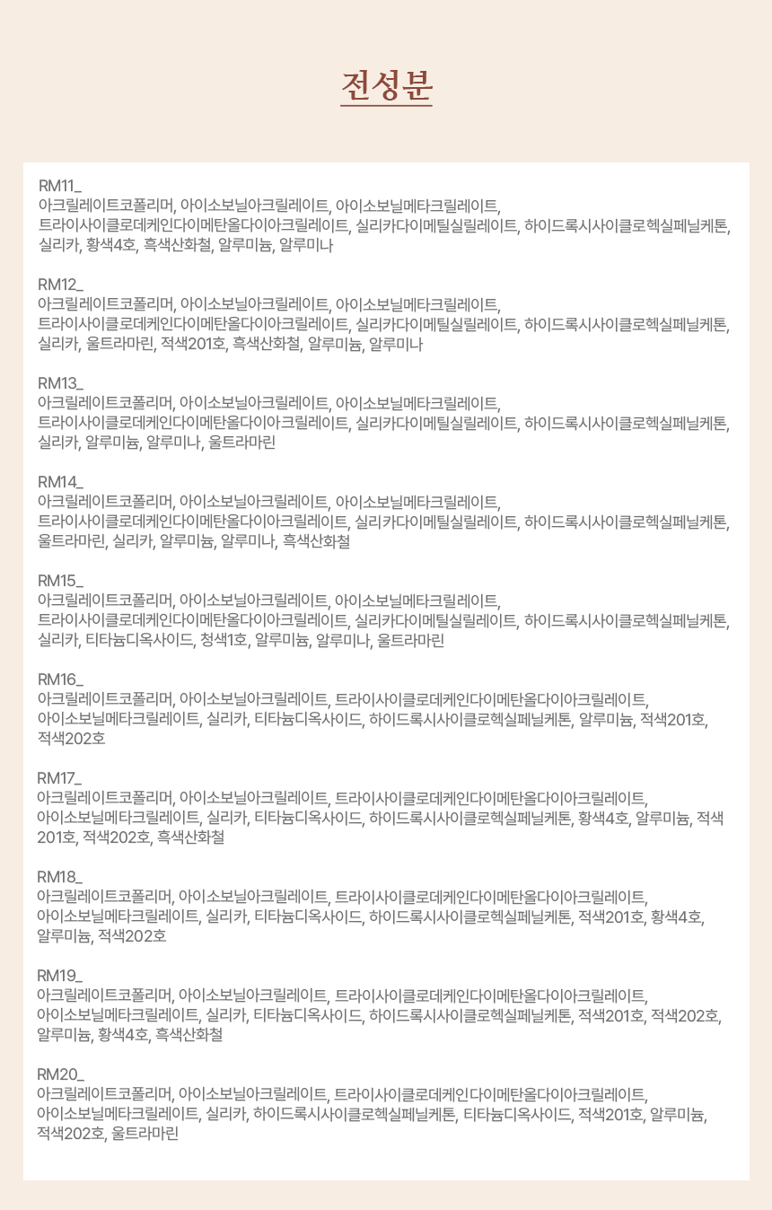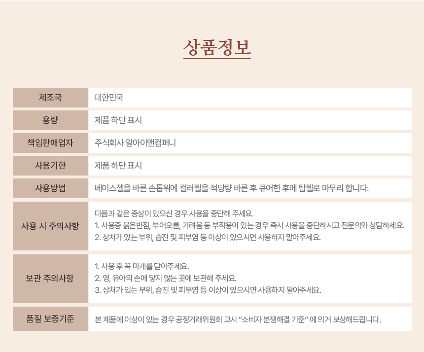 제품 주요 사양 (피부타입, 색상(호, 번) 등)