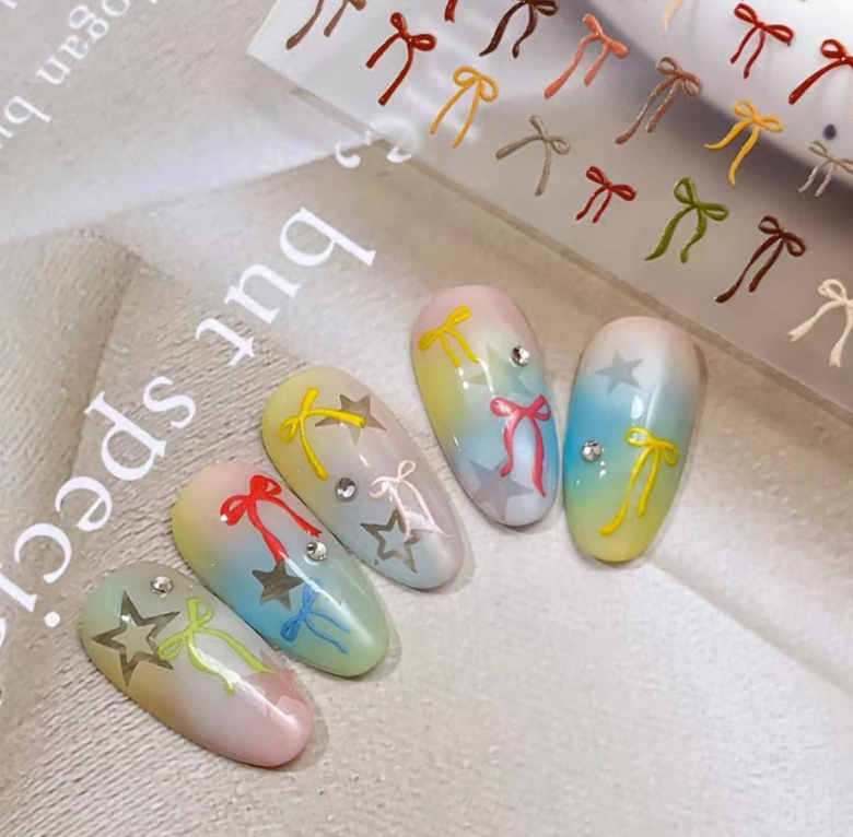 엠보 파스텔 긴꼬리 리본 네일스티커 YT6253