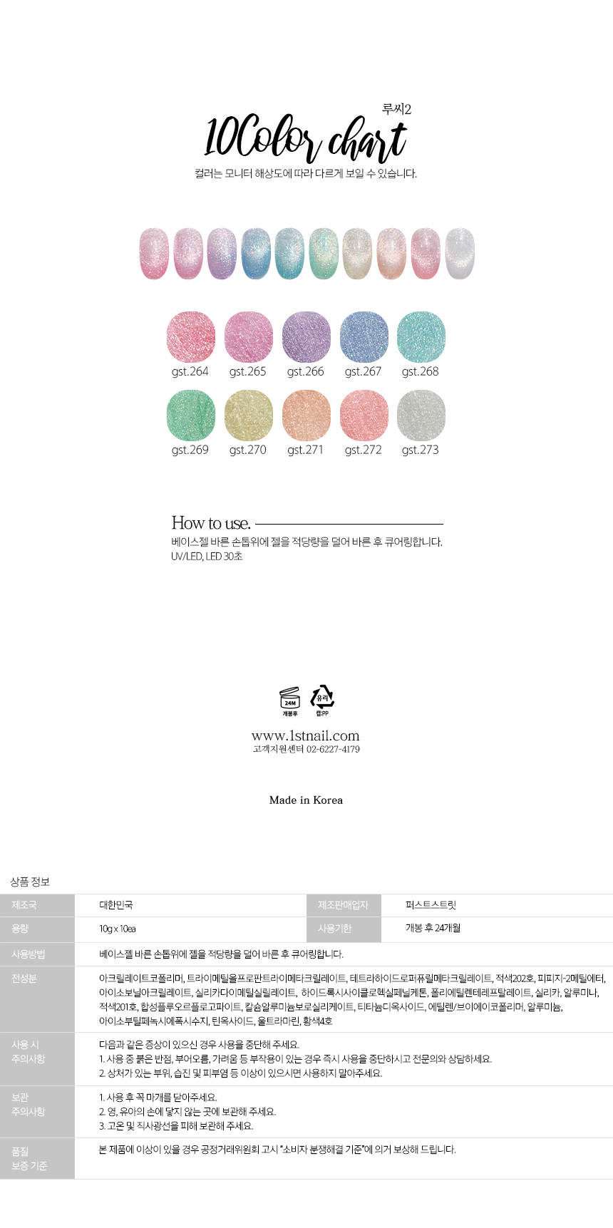 퍼스트스트릿젤 루씨2 10종세트 자석젤 펄스젤
